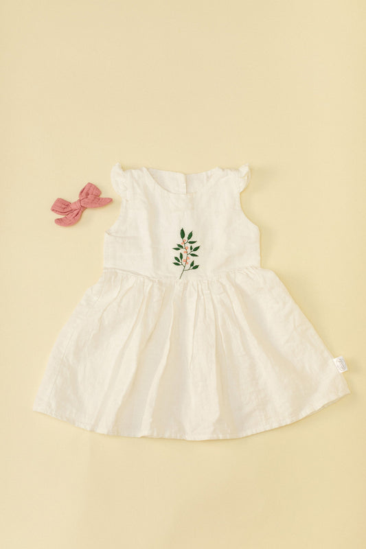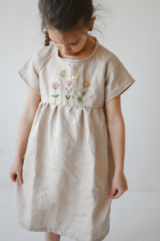 Dekliška oblekica z ročno vezeno rožico (temno zelena&roza)