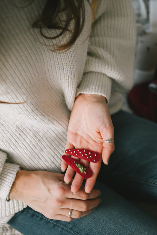 Mašnice z vezenino smrekice (green, red, white, beige)