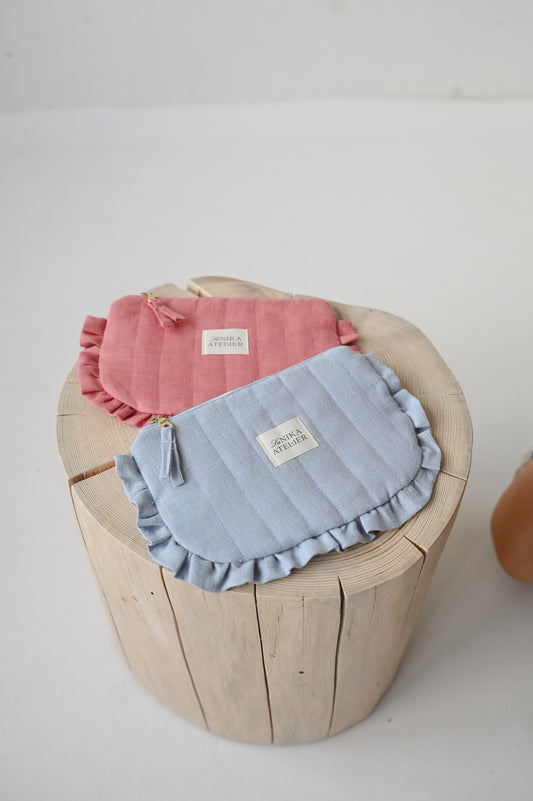 Lanena toaletna torbica z volančki