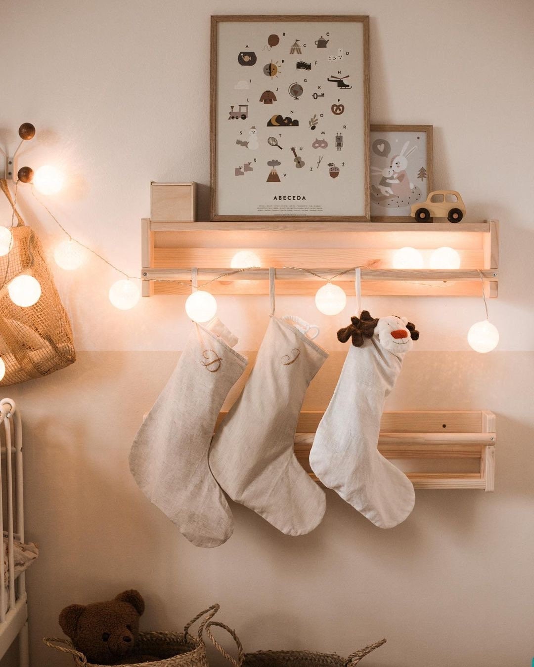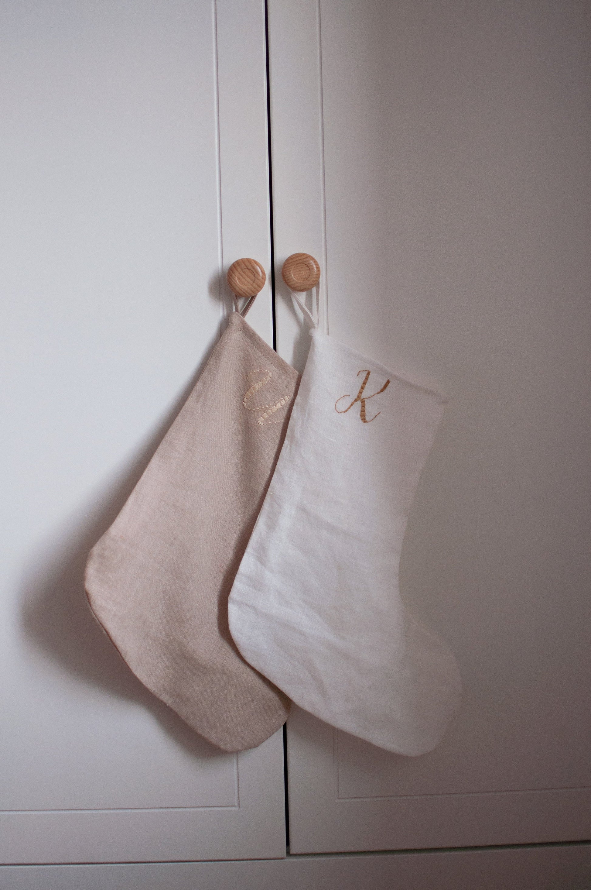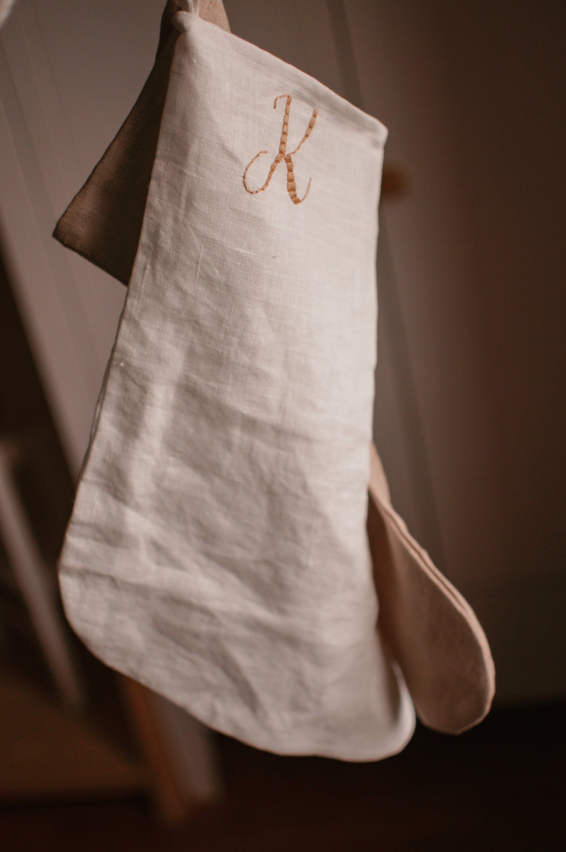 Božična nogavica z ročno vezeno inicialko.