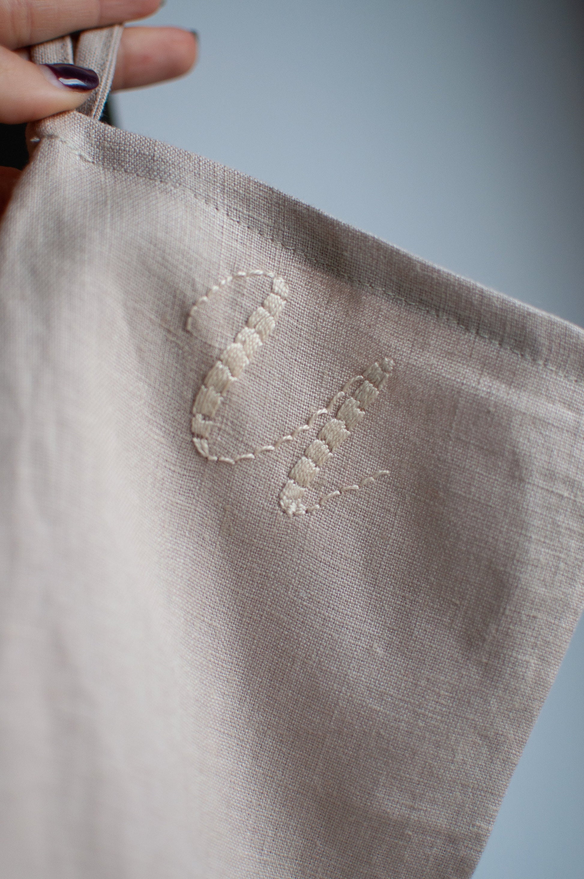Lan in bombaž sta pralna na 30°C. Sušite na zraku. Likanje po vaši želji a vas vabim, da vzljubite njune gube.