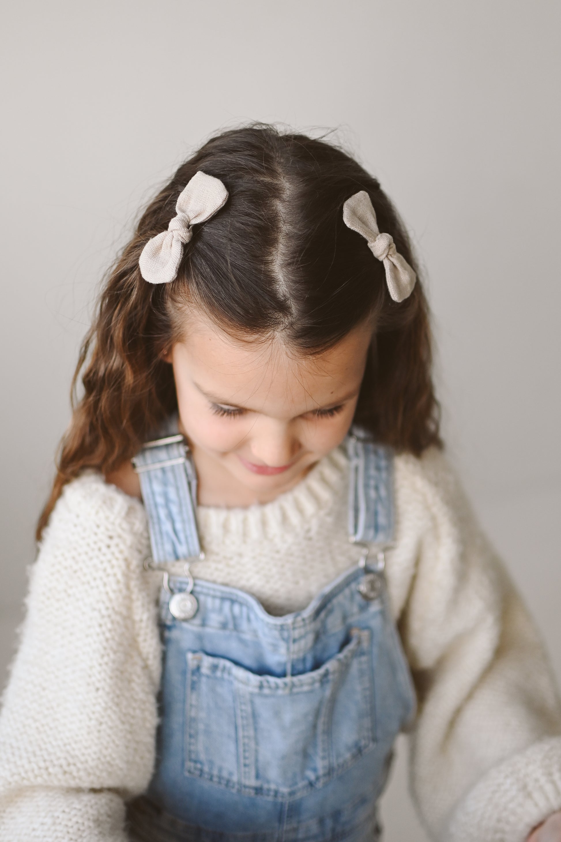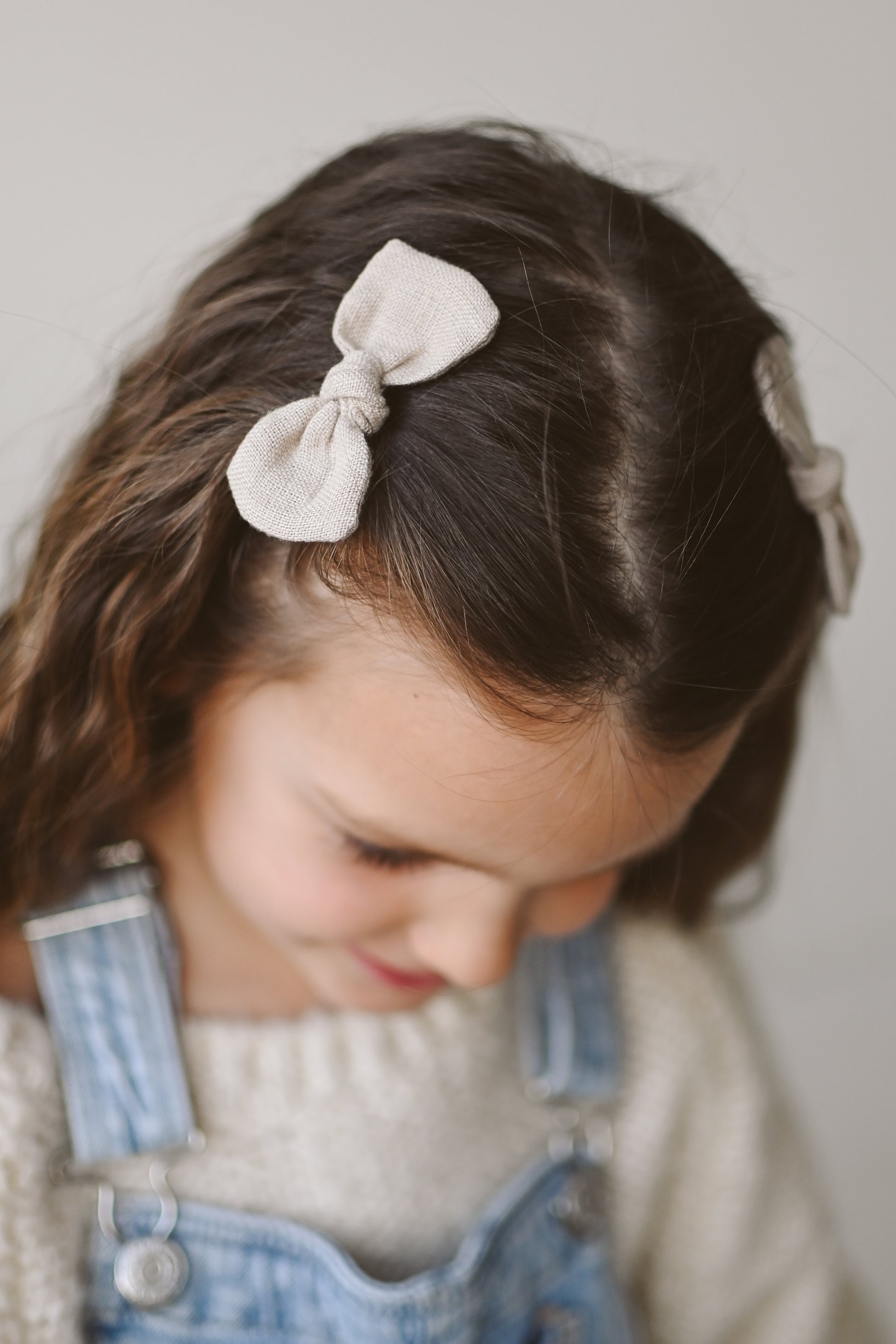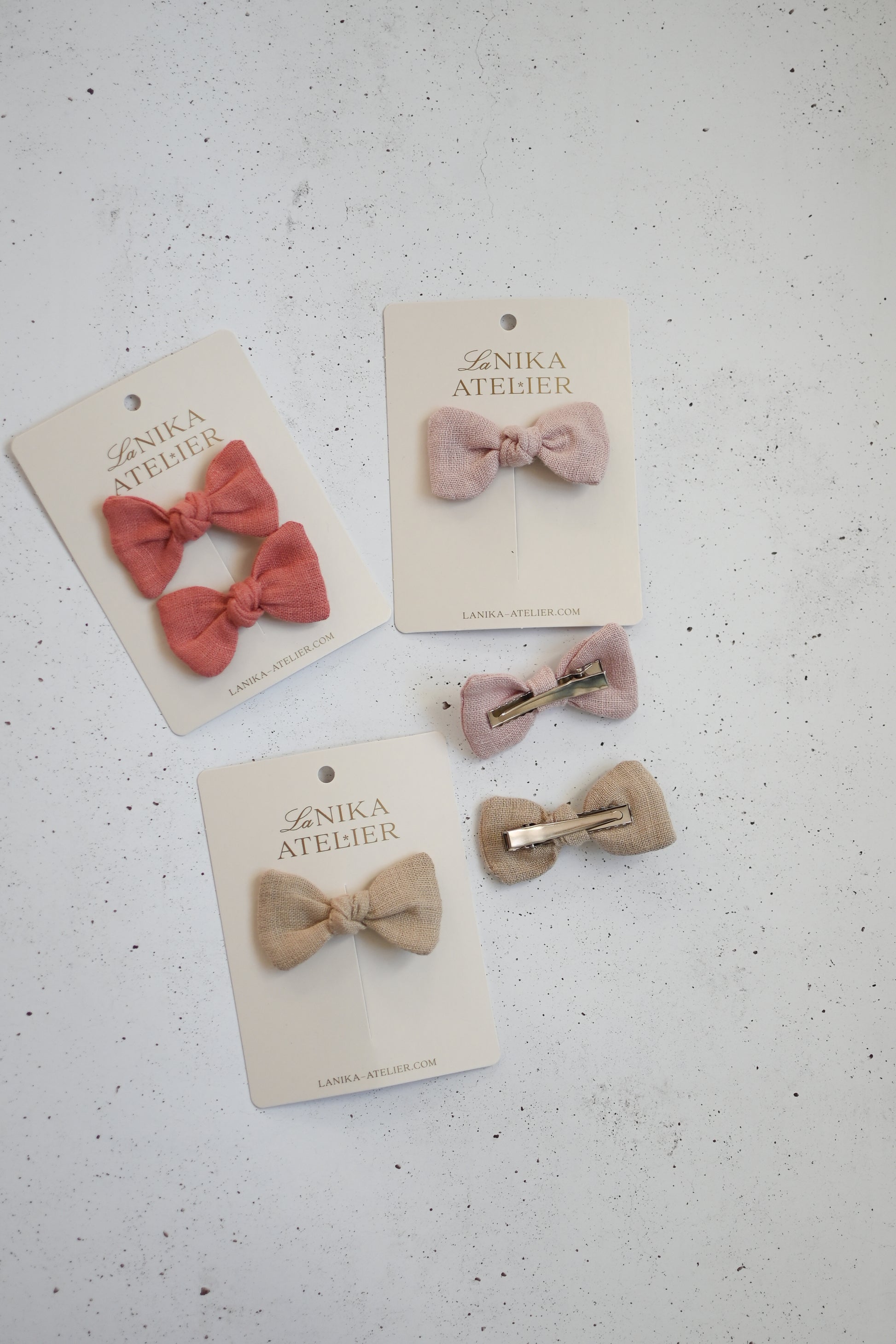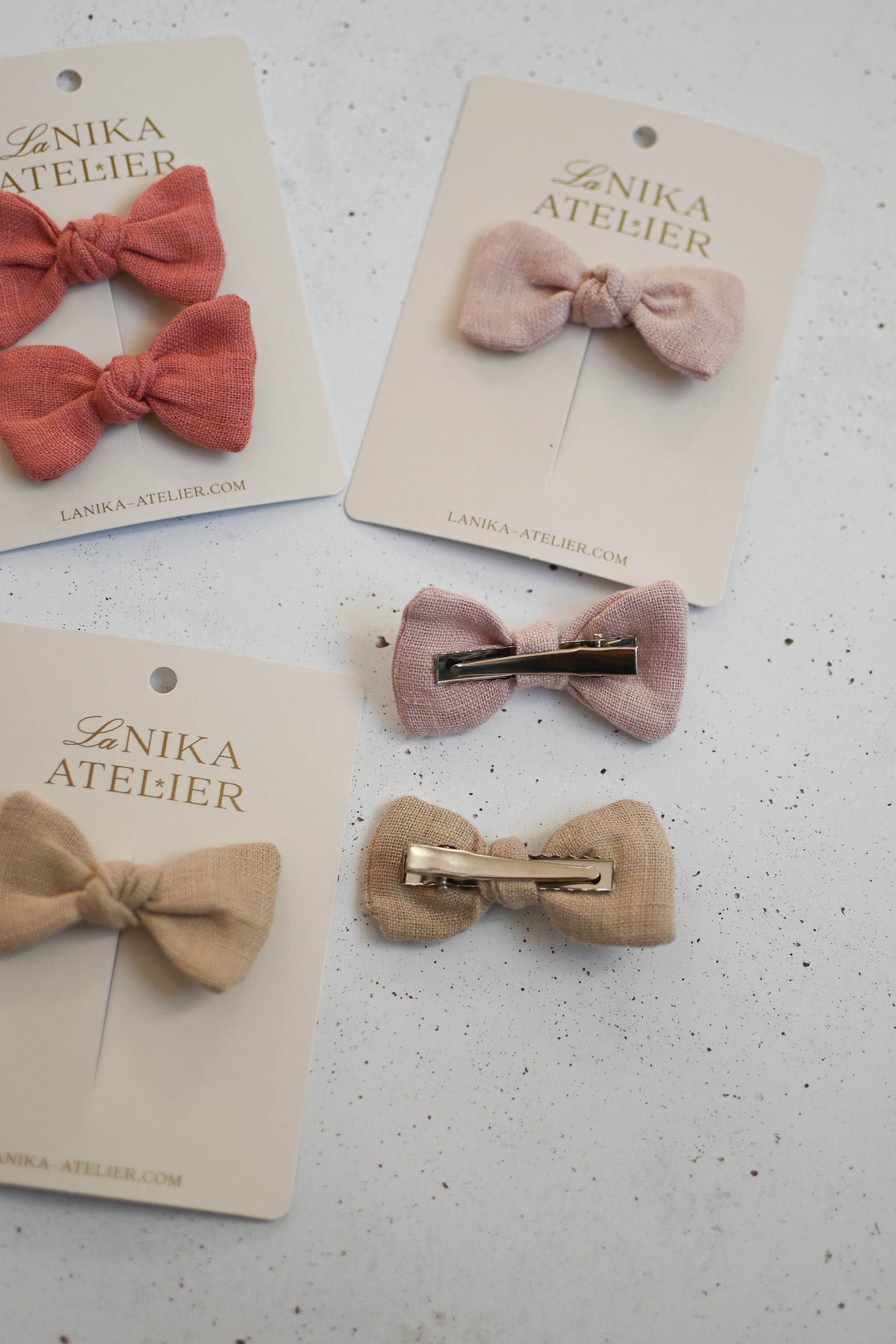 Ročno izdelane mini lanene mašnice na sponki za lase.