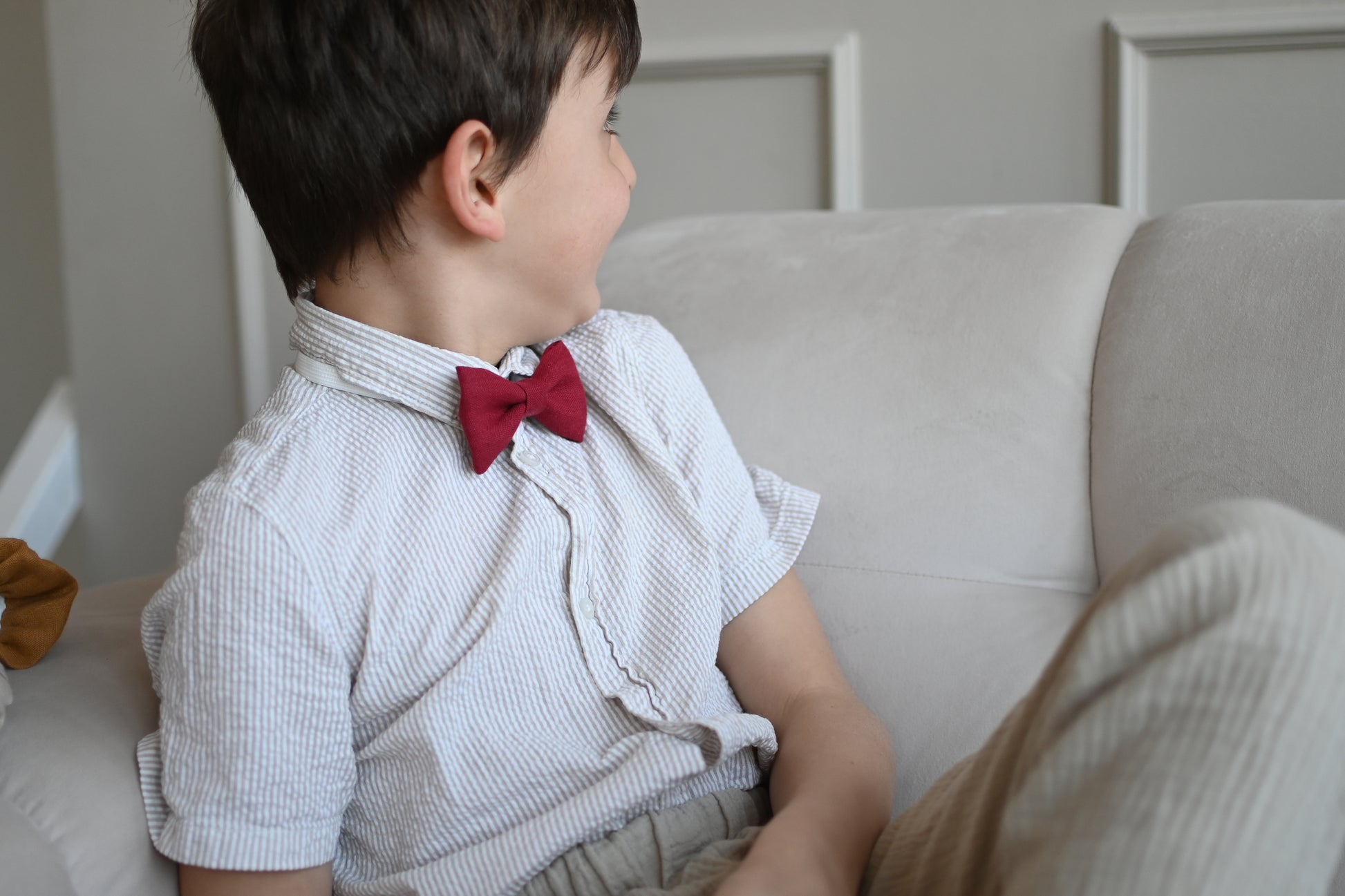 Ročno izdelan lanen metuljček, oblikovan za dečke. Izdelan iz visokokakovostnega lana, ta metuljček doda pridih elegance, hkrati pa ostane lahek in udoben za nošenje.