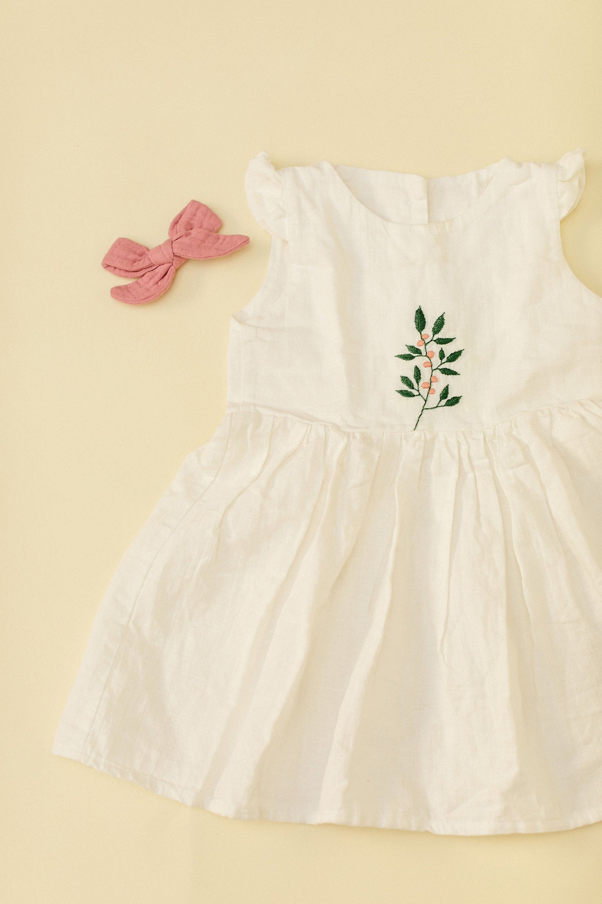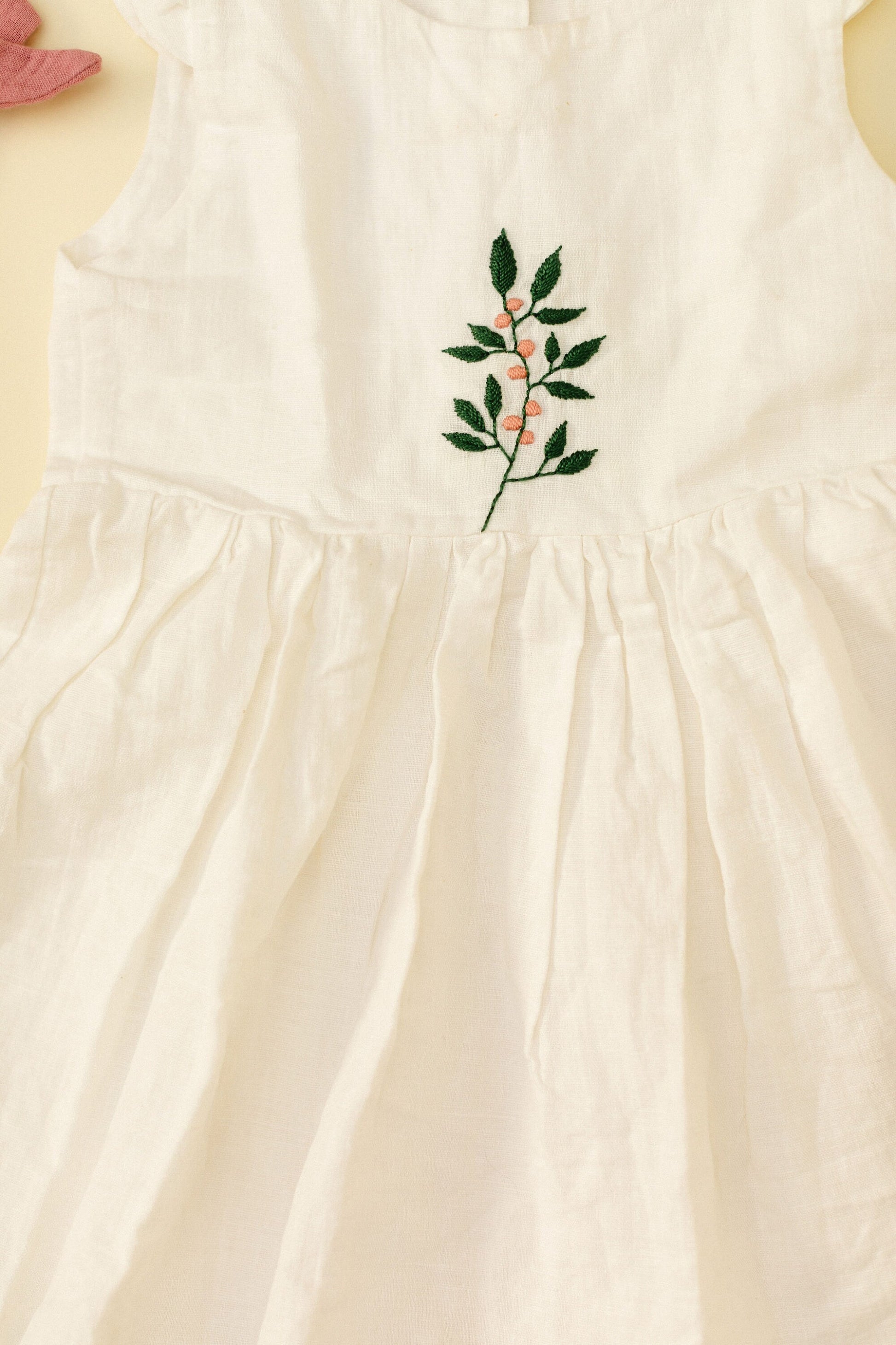 Dekliška oblekica z ročno vezeno rožico (temno zelena&roza)