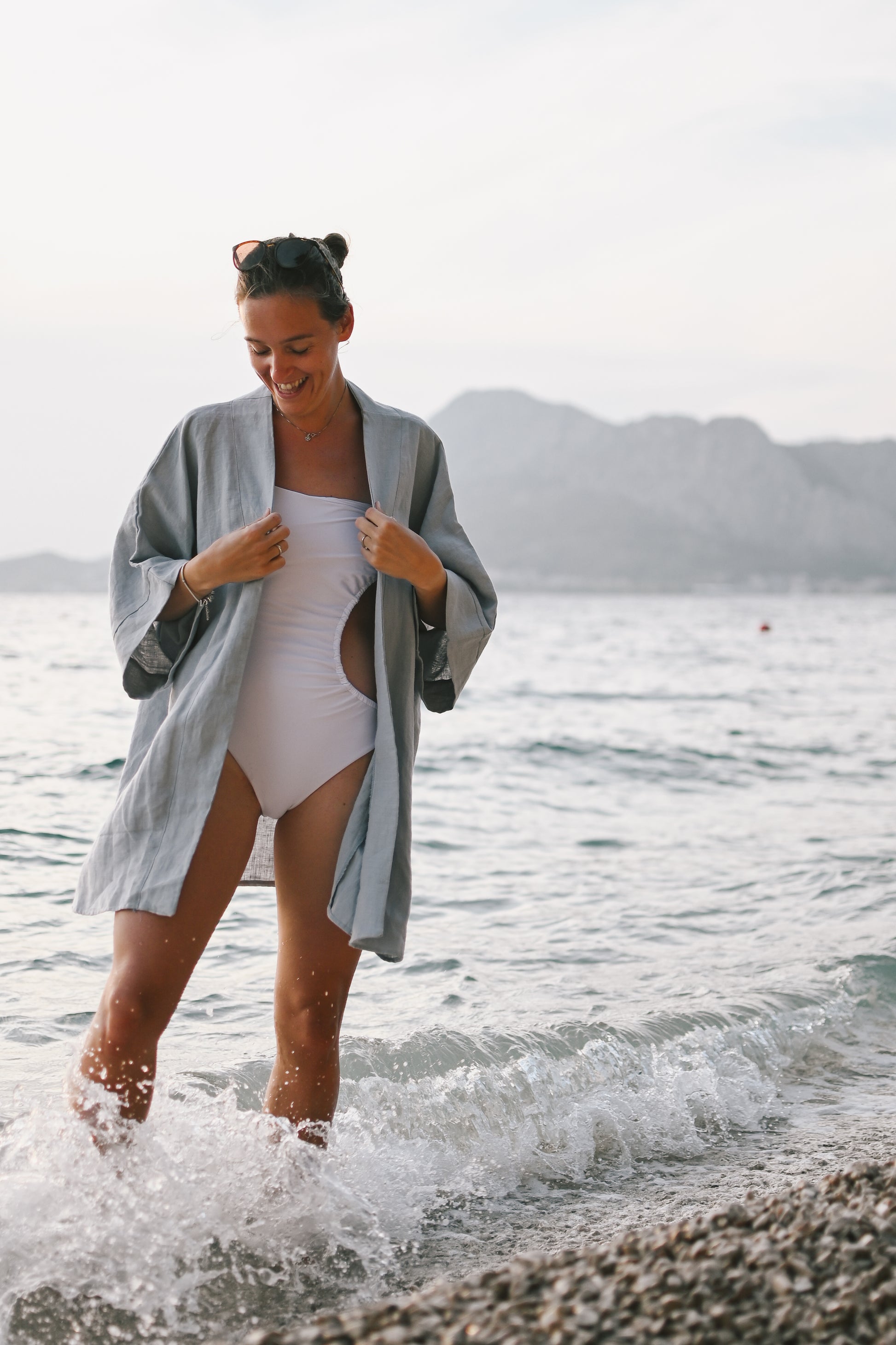 Nosi se lahko kot jopa, jutranjka, plašč po kopanju ali kot cover up na plaži.