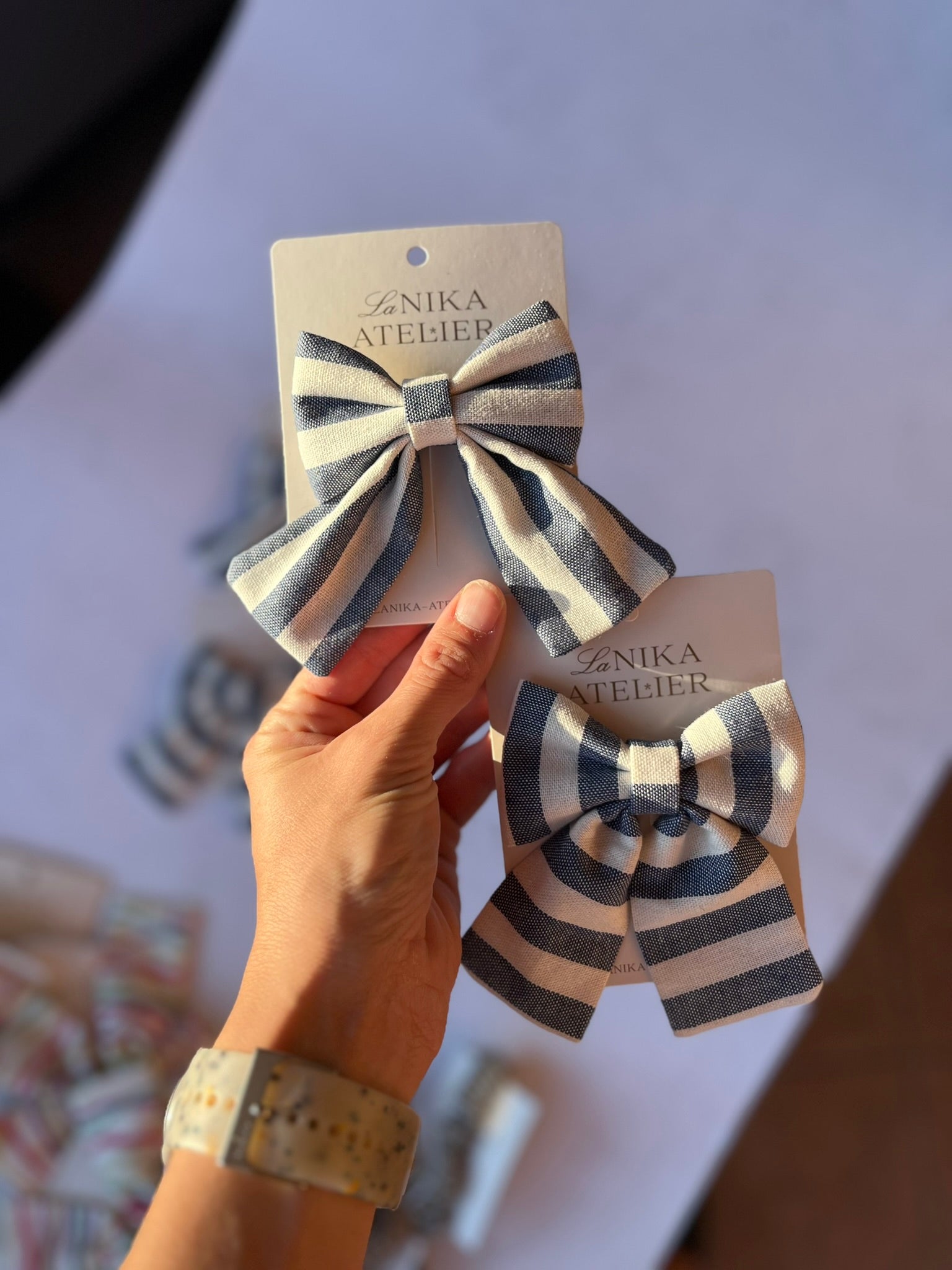 Midi lanene mašnice na krokodilčku. 100% bombaž.