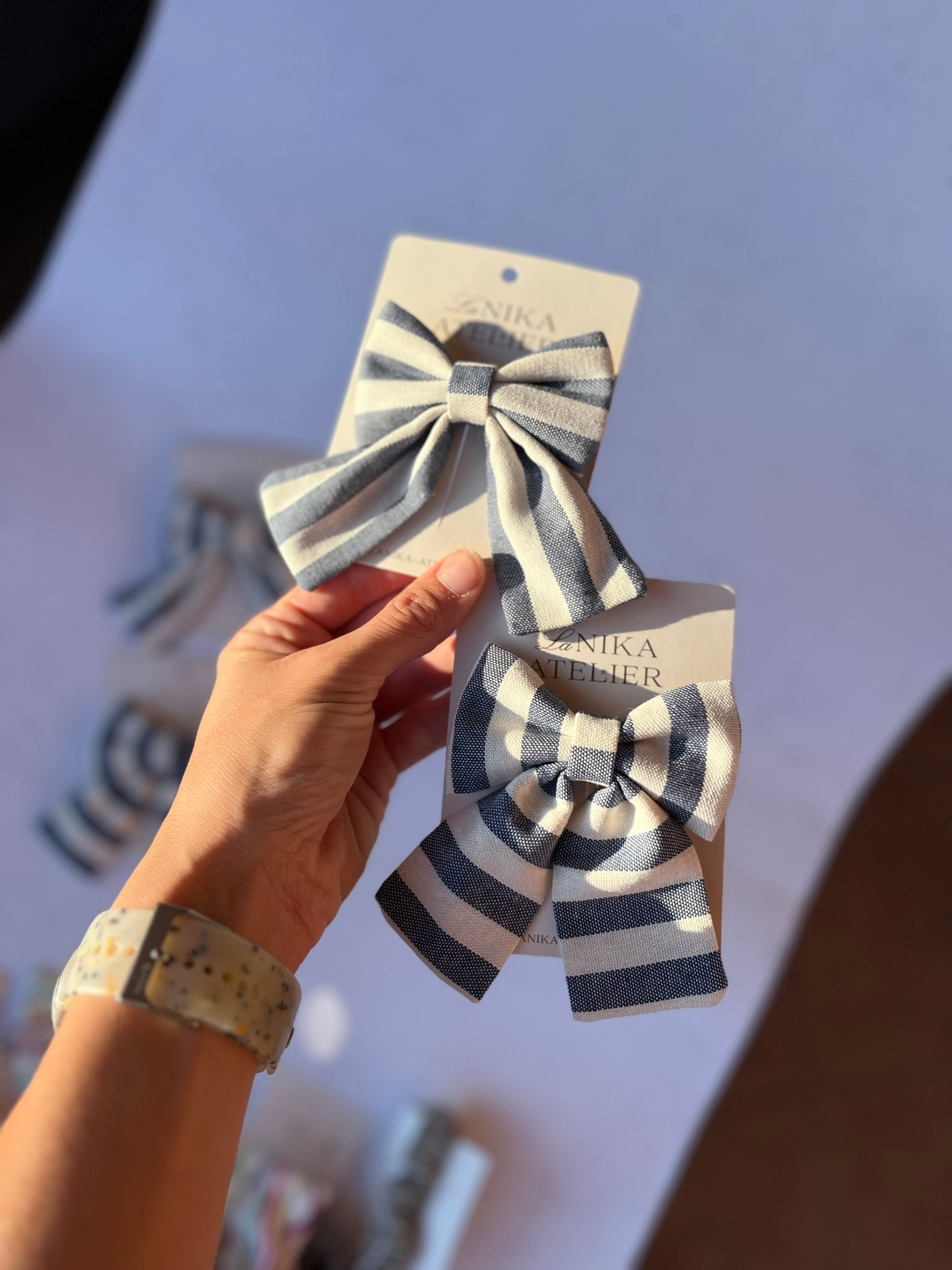 S svojo dimenzijo 9x12 cm so Lanika mašnice dodatek za deklice ali ženske. Na sponki (krokodilčku) so varno pritrjene v vaših laseh, ne glede na to, kam vas bo dan popeljal.