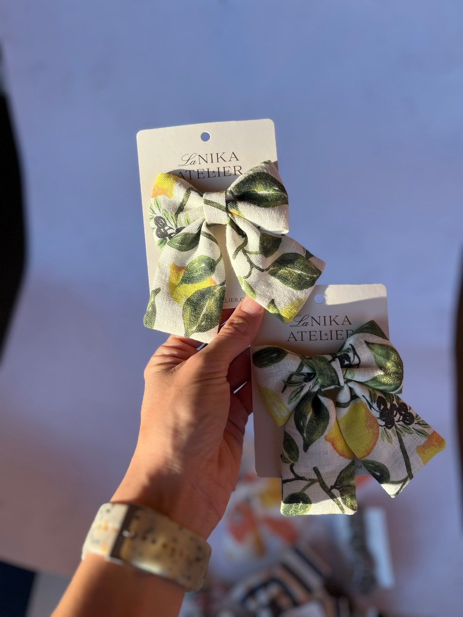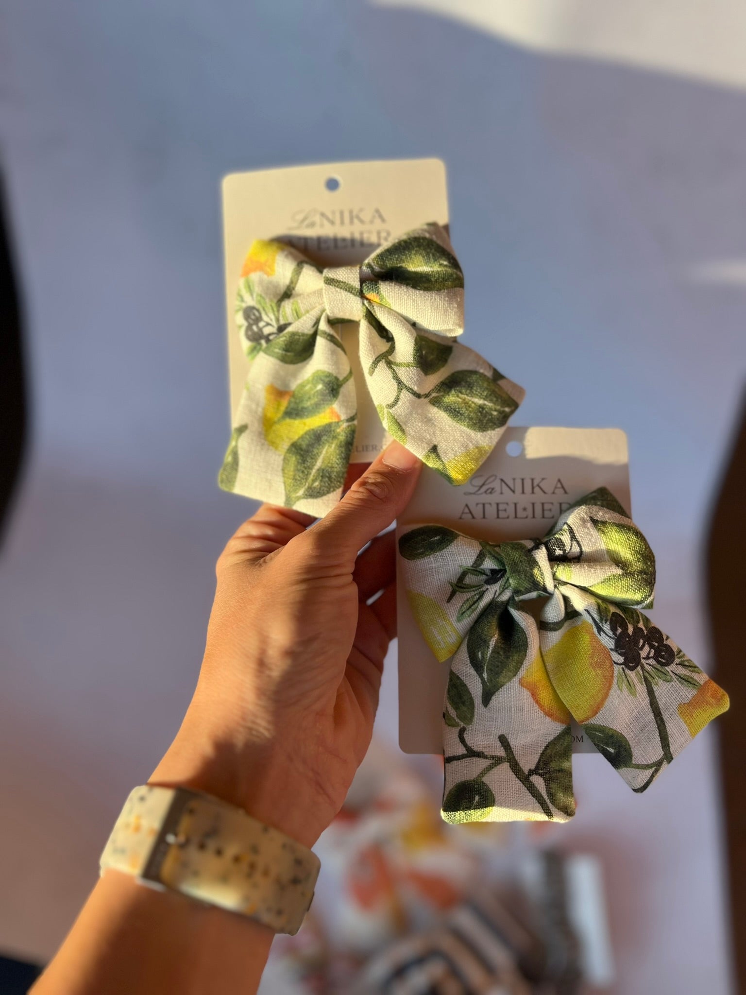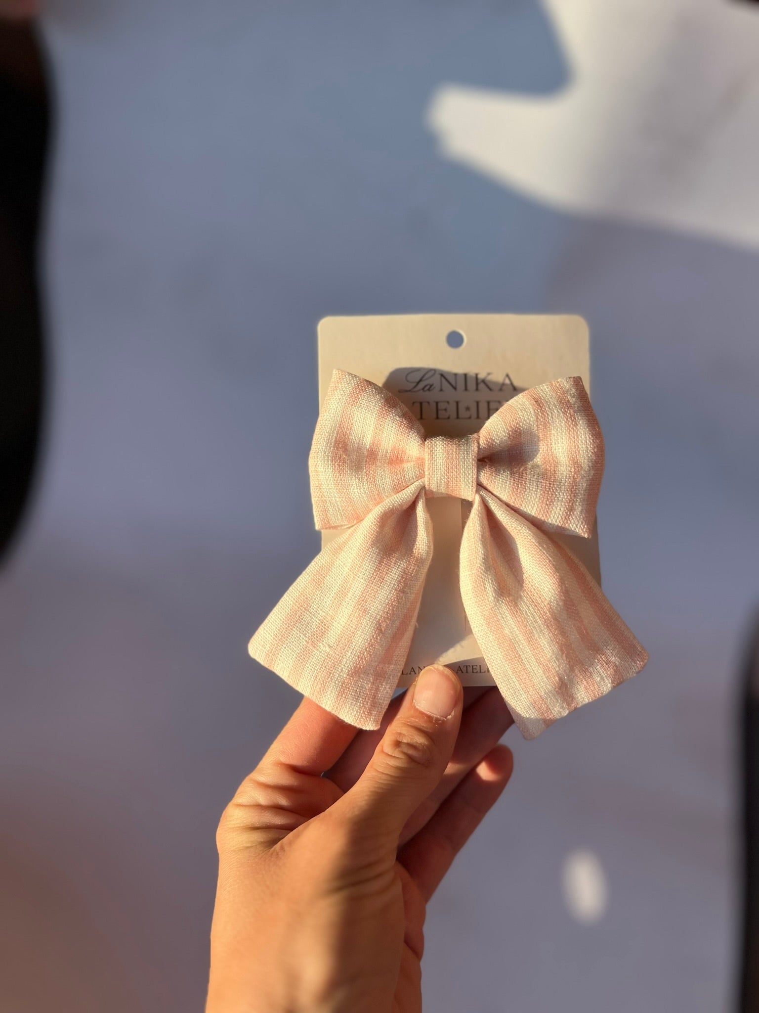 S svojo dimenzijo 9x12 cm so Lanika mašnice dodatek za deklice ali ženske. Na sponki (krokodilčku) so varno pritrjene v vaših laseh, ne glede na to, kam vas bo dan popeljal.