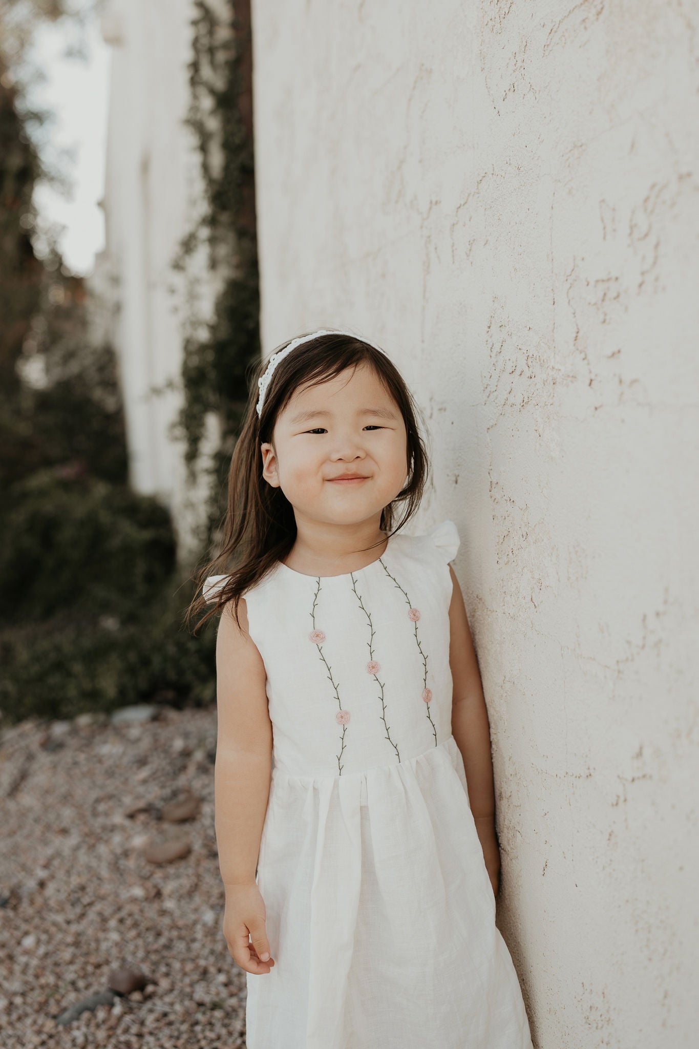 Choose the size by your kids age but check the finished garment measurements and compare them to your child measurements written bellow. If your girl is between sizes I can always shorten or lengthen the dress. I love working with exact measurements to assure better fit, if you are not sure just message me the following data: age, height, shoulder to knee length and chest girth measurement to my email: info@lanika-apparel.com.