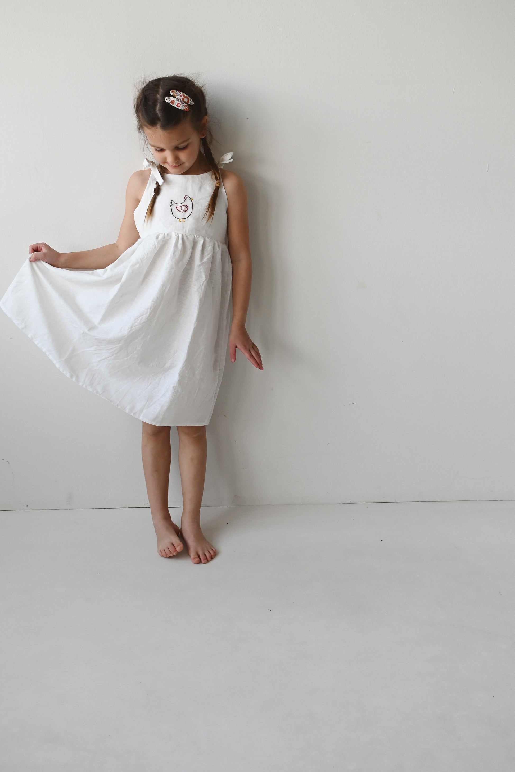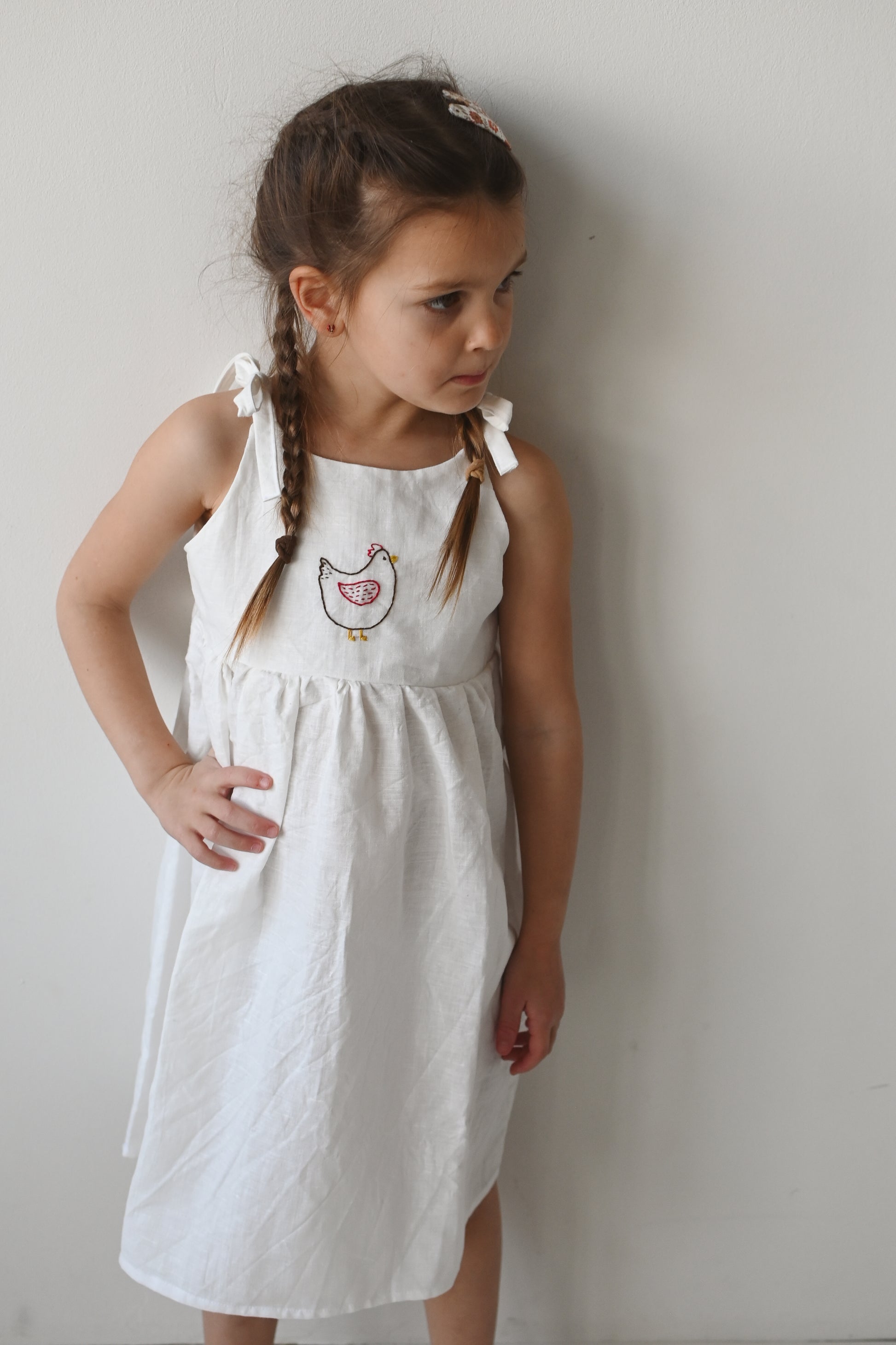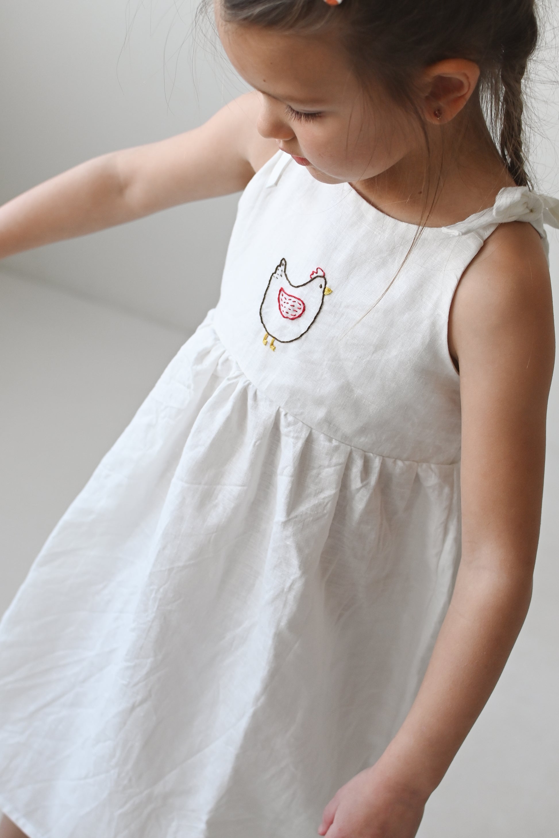 Oblekica je res mehka, saj je oblačilo predprano, da se v prihodnosti ne krči. Izdelano iz tkanine s certifikatom OEKO - TEX Standard 100. 51% lan in 49% bombaž. Vezenje je ročno izdelano in je dolgotrajen proces. Vsaka oblekica je drugačna in edinstvena. Skrbno narejena z veliko ljubezni.