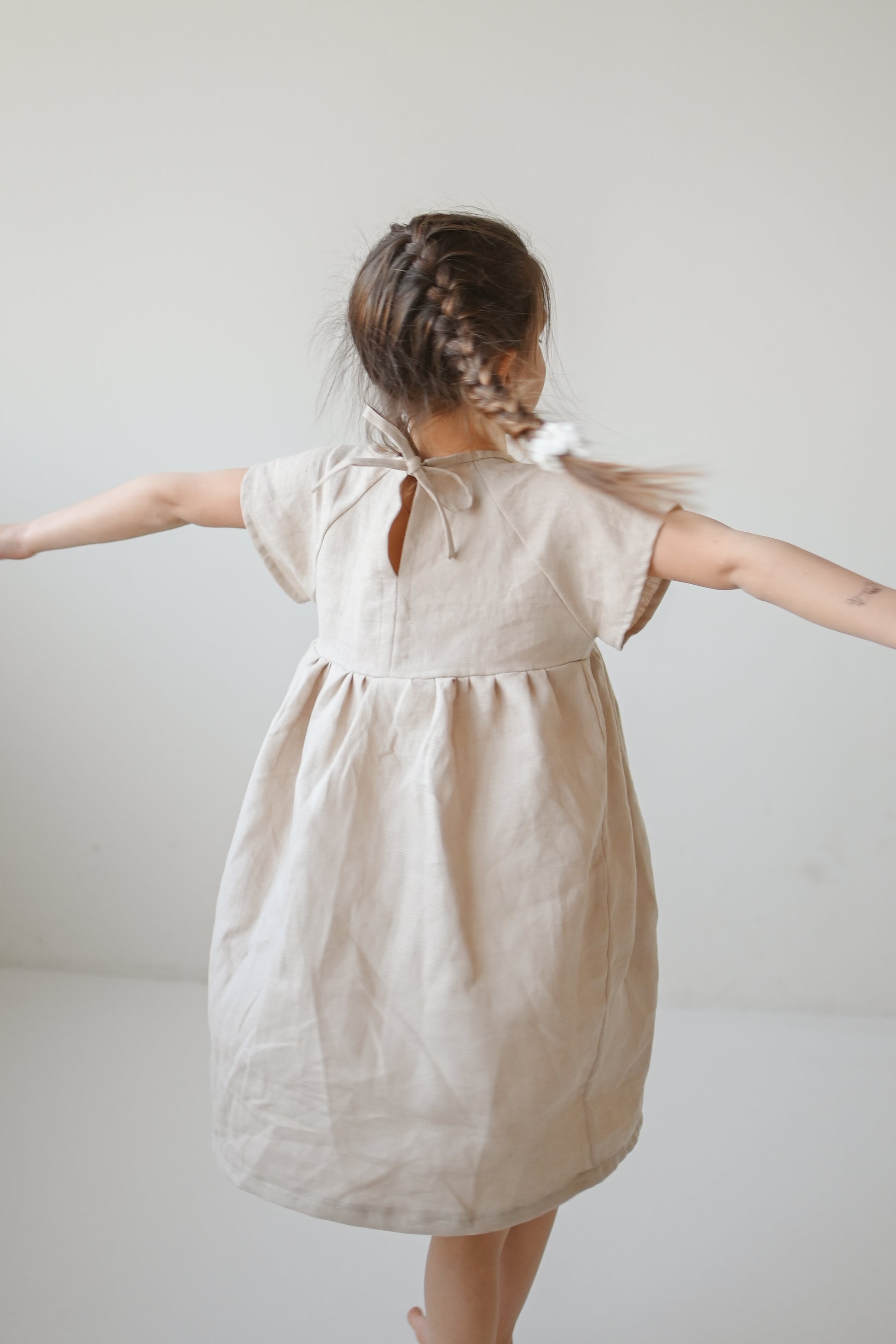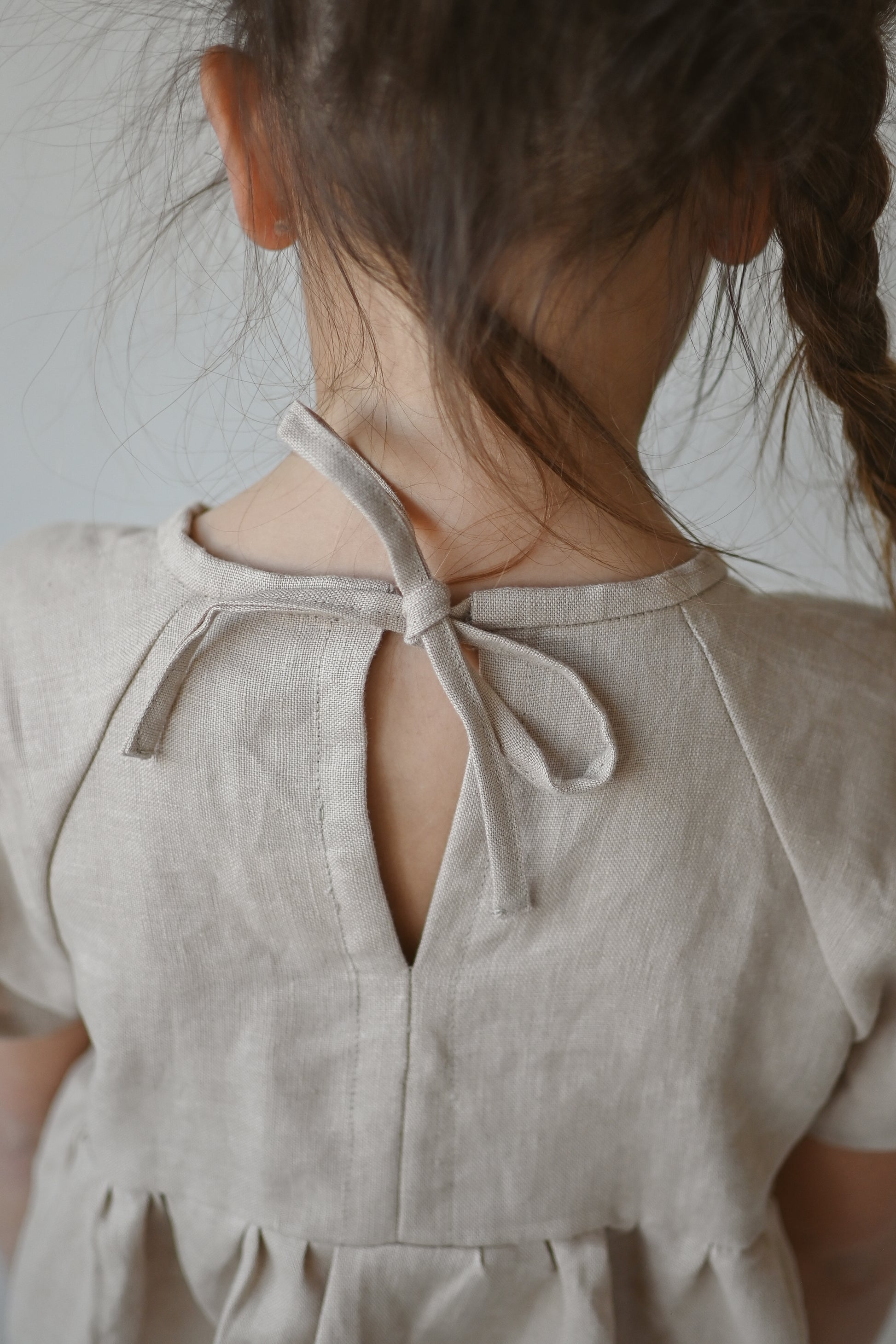 Dolžina oblekice je do kolen. Material je 100% lan- zračen in mehak.