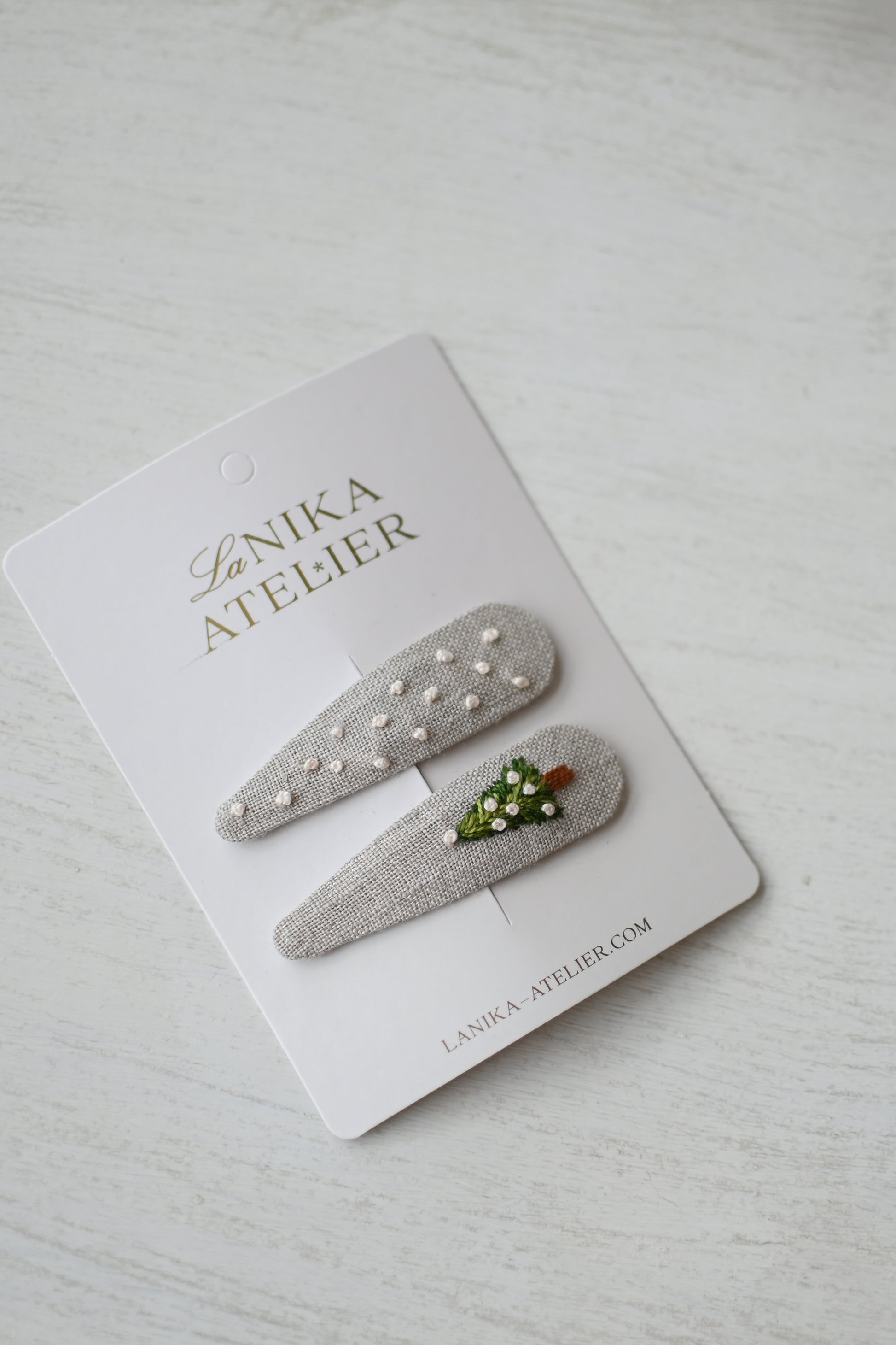 V kompletu sta dve lasni sponki. Na voljo v treh različnih barvah.
