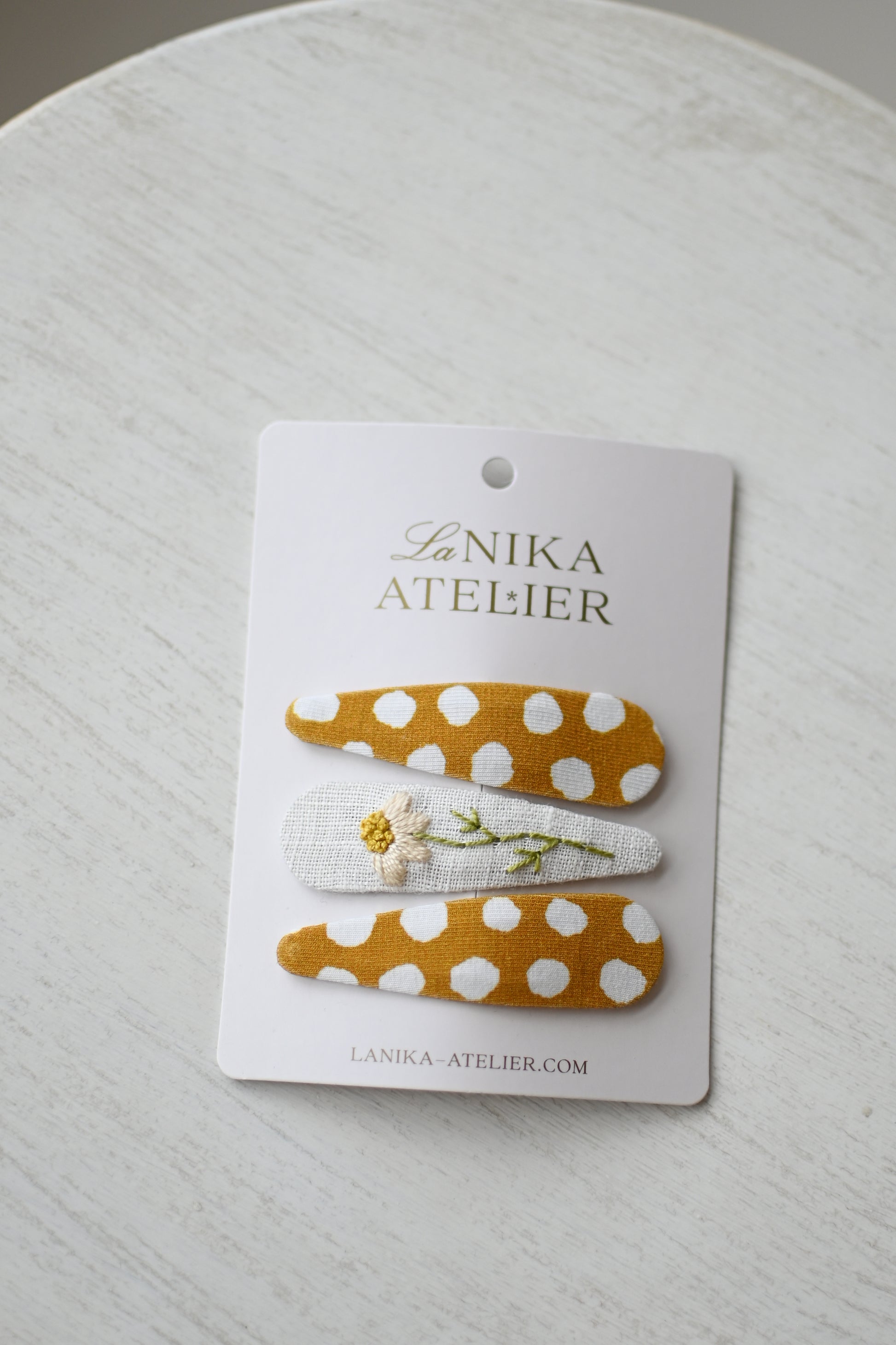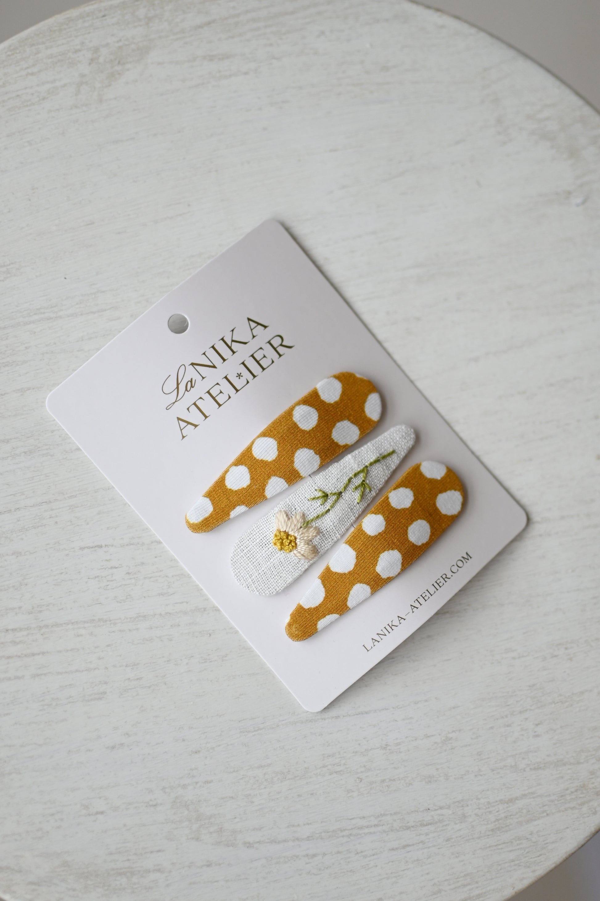 Špangice yellow polka dots + daisy trio