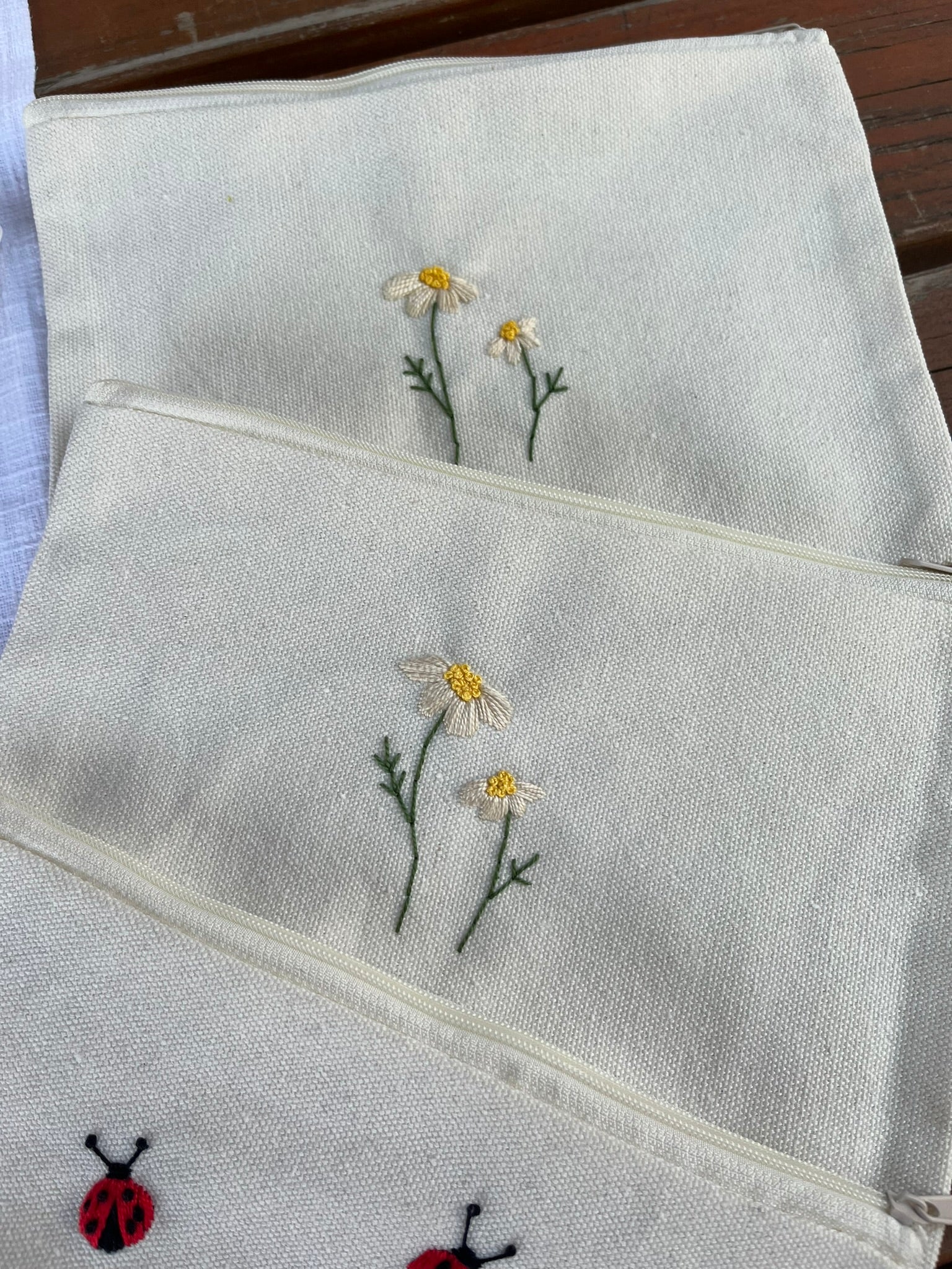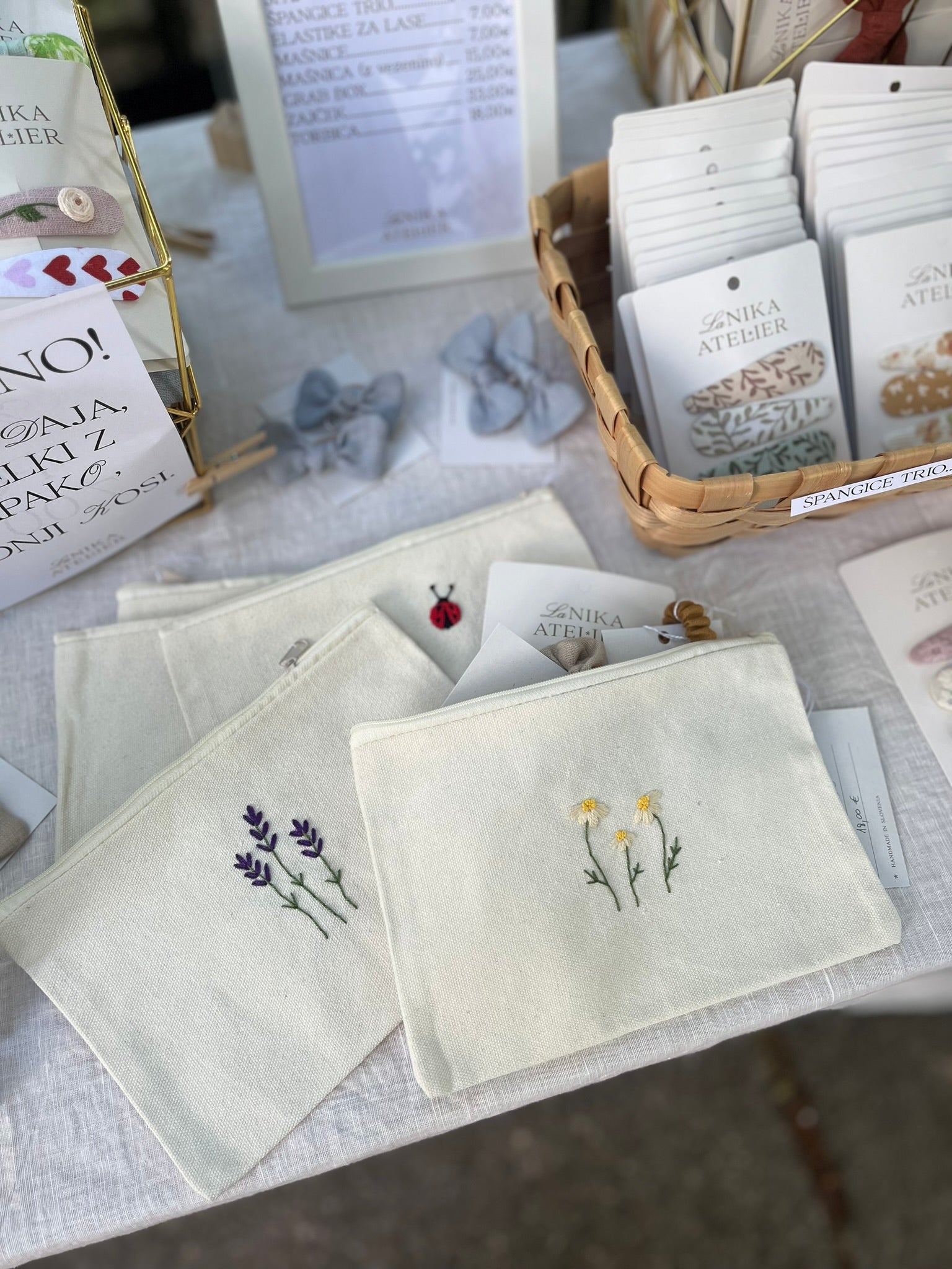 Izdelana je iz visokokakovostnega bombažnega platna v umazano beli barvi in okrašena z ročno vezenimi motivi. Izbirate lahko med že narejenimi motivi sivke ali marjetic, ali pa torbico personalizirate z dizajnom po vaši želji—ime, rože ali katerikoli motiv, ki vam je pri srcu. Pošljite mi sporočilo na email naslov info@lanika-atelier.com, in z veseljem bom ustvarila edinstven kos posebej za vas!